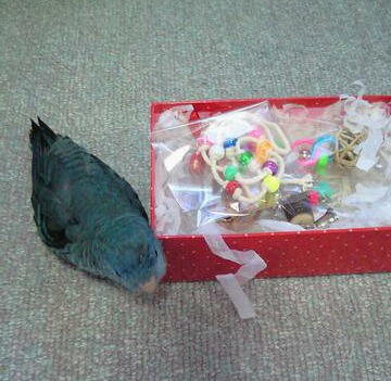 やまねずみぶろぐさんの「第2回Christmasプレゼント企画」に 新参者のクセにあつかましく参加させてもらって、 ちゃっかりプレゼントをゲットいたしました ![]() 昔はキリバンゲッターまぁことしてあちこちのサイトを荒らしてましたが、 今回はあみだばばぁになってアミダでゲットです! そして、ステキングなプレゼントが我が家にやってきましたよ~ ラッピングからしてステキです、封筒開けたとたん あまりのカワイさに「キャー」って叫んじゃいました ![]() そこっ、よそ見しないっ ![]() ちゃんとこっち向いてお礼いいなさいっ 「やまねずみさん、ありがとうございました!」 その後無視してどっか行っちゃったので 「おいでバー」に乗せてムリヤリのツーショット ![]() 開けるのももったいないかわいさ。 しかし、あけてもかわいいのですっ そこっ、角でかかないっ ![]() 1つずつかわいく包装してありますぅ~ ![]() 大雑把な私にはこの細やかな心遣いに感動。 ぷーちんにはよさはわかってもらえないけど、 私はもう感激しまくりでしたよ。 中身はぷーちんのおもちゃがいっぱい。 早速使っていただくことに ぱくぱくやっちゃいます~ いい感じに激しく遊んでくれました♪ さてお次 わーい、音が鳴ります っとちゃらんちゃらん鳴らせて遊んでました。 ラスト びらびらしてるのが気になります。 ひっぱってました。 どれも、怖がることなくぱくっとやってくれました。 一番食いつきがよかったのは、 シンプルなカラフルビーズロープかな? まだまだやまねずみさんところのぷーちゃんみたいに 華麗に遊んでくれるまでは時間がかかりそうですが、 そのうち慣れてくれることを願います。 これ全部、やまねずみさんの手作りなんですよ! すごくないですか? 鳥飼さんは器用でセンスのいい人多いですね ![]() ぷーちんのおやすみカバーさえ作れない私はだめだめすぎですぅ ![]() やまねずみさんっ! ステキなプレゼント、ありがとうございました!! ![]() その1ということはその2もあるわけです。 それについてはまた後日 ![]() |