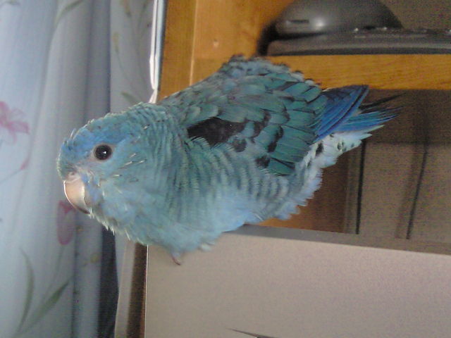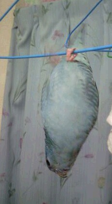 こうやって前のめりに止まっていることが 多いぷーちん しかし、止まるところが細くなると、 さすがに前のめりにはなれないみたい こんなことになってます ![]() ちゃんと、鳥らしく止まろうとしても 次の瞬間にはぶらさがっているぷーちん。 ぴーちゃんはツバメの様に止まってたのに (画像ナシ・・無念・・) もし、日本に野生化したサザナミの群れがいたら、 電線にこんな風に鈴なりにぶらさがってるのかなぁ・・ リースぐらいの太さがあるとほれこの通り ボケてますがちゃんと止まれてます でも、ワイヤーハンガーになると 片足でぶらさがちゃったりしてますわ なんか一本釣りされたマグロのよう・・ 冬は乾燥対策もかねて洗濯物を室内に干すことが多いので 洗濯紐をつけてますが、 ぷーちんが遊んでくれるので常時つけることになりました。 洗濯紐には、洗濯物のほか、リースや「コトリマンガ。」の密さんオススメの 鳥かごのオブジェ(やっと見つけましたよ!>密さん) などがいろいろぶらさがってて、私の頭にぶち当たってます ![]() ますます、雑然としててモノが多くなっているワンルームな我が家 いーの、いーの。ぷーちんが遊んでくれれば それで私は満足なのさ~ PR |