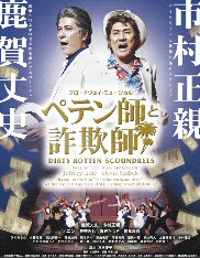 とっても、寒い日でした。 ![]() 北九州まで行ってきました(バスで1時間半ぐらい) 風邪が悪化しました ![]() でもでもでもっ とっても楽しかったでぇぇぇぇす ![]() 映画『ペテン師とサギ師/だまされてリビエラ いやははなつかしい映画ですね~ って私見てませんが(爆) こんなに痛快なら映画もきっと面白いでしょう。 一度見てみたいものです。 主な出演者は、 鹿賀丈史、市村正親、ソニン、愛華みれ、香寿たつき、鶴見辰吾 豪華でしょ、すばらしいでしょ! こーんなすばらしい出演者を、なんと 最前列 で、見させていただきました。 オケピがあったので、最前列だったんです。 腰抜かすほどびっくりしました(笑) しかも、指揮者は御崎恵さん(宝塚の指揮者なんです) すごぉぉぉく至近距離で彼女の颯爽とふる姿もおがめました (ヅカだと銀橋があるから見えないもんね) 題名どおり、どっちがペテン師でどっちが詐欺師かわかりませんが、 鹿賀市村コンビの痛快なだましあいです(笑) 2人の丁々発止のやりとりが小気味よくって痛快でしたわ とにかく市村氏はすごいっ 彼のすばらしさは前々から知ってましたが、 今回はコメディということで、本領発揮? やりたい放題ですよ! すっごい汗かいて、歌って踊って、 目は少年のようにきらきらぎらぎら ![]() なんでも最近50代最後の誕生日を迎えられたそうですが、 そんなこと一切感じさせない身体能力の高さ。 おっさん、すごいっす ![]() 他の出演者の方々も、とってもよかったです~ ソニンちゃんがあんなに歌がうまいとは知りませんでした~ パンチのある地声がとってもぐっ ![]() 香寿さんは、田舎(オクラハマ)出身の石油王の娘ってことで お金持ちだけど、どこかさえない勘違い娘の役で すごーく面白かったです。 出番は1幕だけでしたが、元気に歌って踊って 市村・鹿賀氏とのからみもとっても楽しかったです。 久しぶりに彼女の歌声聴けたのはうれしかったけど、 もっとしっとり系を聴きたかったけどね ![]() あぁ、やっぱりコメディは楽しいですね! いっぱい笑って、いっぱいはしゃいで、のりのりで劇場を後にしました ![]() |