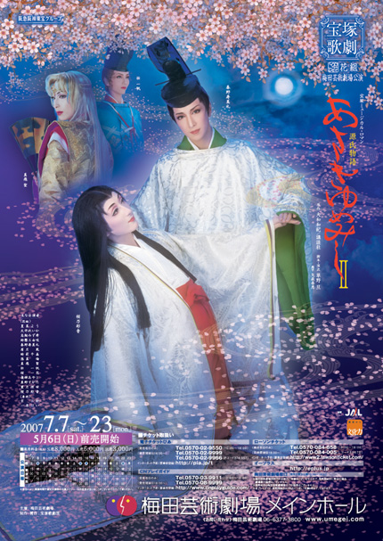 ちょっと萎えた作品も終わり、次はショーのお時間です ![]() 宙組誕生10周年ということもあって新生宙組を祝うような 宇宙を舞台にした華やかなショー ![]() 幕開きからそれはもう夢夢しいファンタジーな世界 確かに新しいトップさんにはふさわしい幕開きでございます~ 「コスモ、コスモ、ファンタージスタ」の組子たちの掛け声で 卵から生まれる新しいトップさん ![]() なかなかかわいいものでございます。 しかし。主題歌が・・・・・ 「そらそら、どきどき、どうして~」 なんて歌われるとどうしていいのかわかりません ![]() なんか「お母さんといっしょ」などの子供向け番組を見てるような錯覚 。。。。私だめ。。。もう一気にどんびき。。 私が何万光年の宇宙に飛ばされた気分 ![]() その後卵から生まれた宙トップさんは惑星探索の旅にでるのです~ ![]() 木星ではお約束のように「ジュピター」を歌い(宙組コーラスが美しかったのでOK) 金星ではお約束のようにタキツバの「ヴィーナス」を歌い フィナーレは「宇宙のファンタジー」 なかなかベタな選曲でした ![]() 惑星が変わるごとにどんどん大人っぽくなっていったので どんびきしていた私も地上に戻ってくることができましたわ ![]() 火星での、今回星組から嫁に来た娘トップさんのダンスが超かっこよかった! こうやって男役を引き連れて踊れる娘さんって好きだわ~ 金星での、タキシードの男衆の中で、ひときわ男くさいラントム君に萌え やっぱり花組育ちは違うわ。かっこよすぎ。 水星でみょーなにあわなーい妖艶な役をやってましたけど、 それより断然こっちのほうが似合うよ ![]() その横でなんか男くさくなりそうなユウミさんもいい感じでしたわ 彼女お芝居では悪役をこってりやってらっしゃったし けっこういい感じになってきたんじゃないでしょうか? これからが楽しみですわ~ あとは、ホクショーさんですかねぇ。。。男1,2と娘1の歌唱力が なのでなんかとてもお上手に聞こえましたわ。 彼女が宙組にいてよかった(笑) っというわけでなんとか持ち直したショーですが ラストはまた 「そらそら。どきどき、どーして~」の 迷曲を聞いてしまったのでどんびきしたのでした ちゃんちゃん・・ |